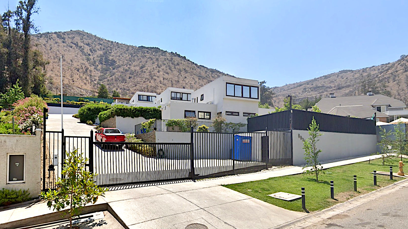 Svažitý pozemek rozdělen terasami. Domy různé velikosti od 70 m2 do 210 m2. Hned za domy začíná podhůří Cordillery de los Andes.