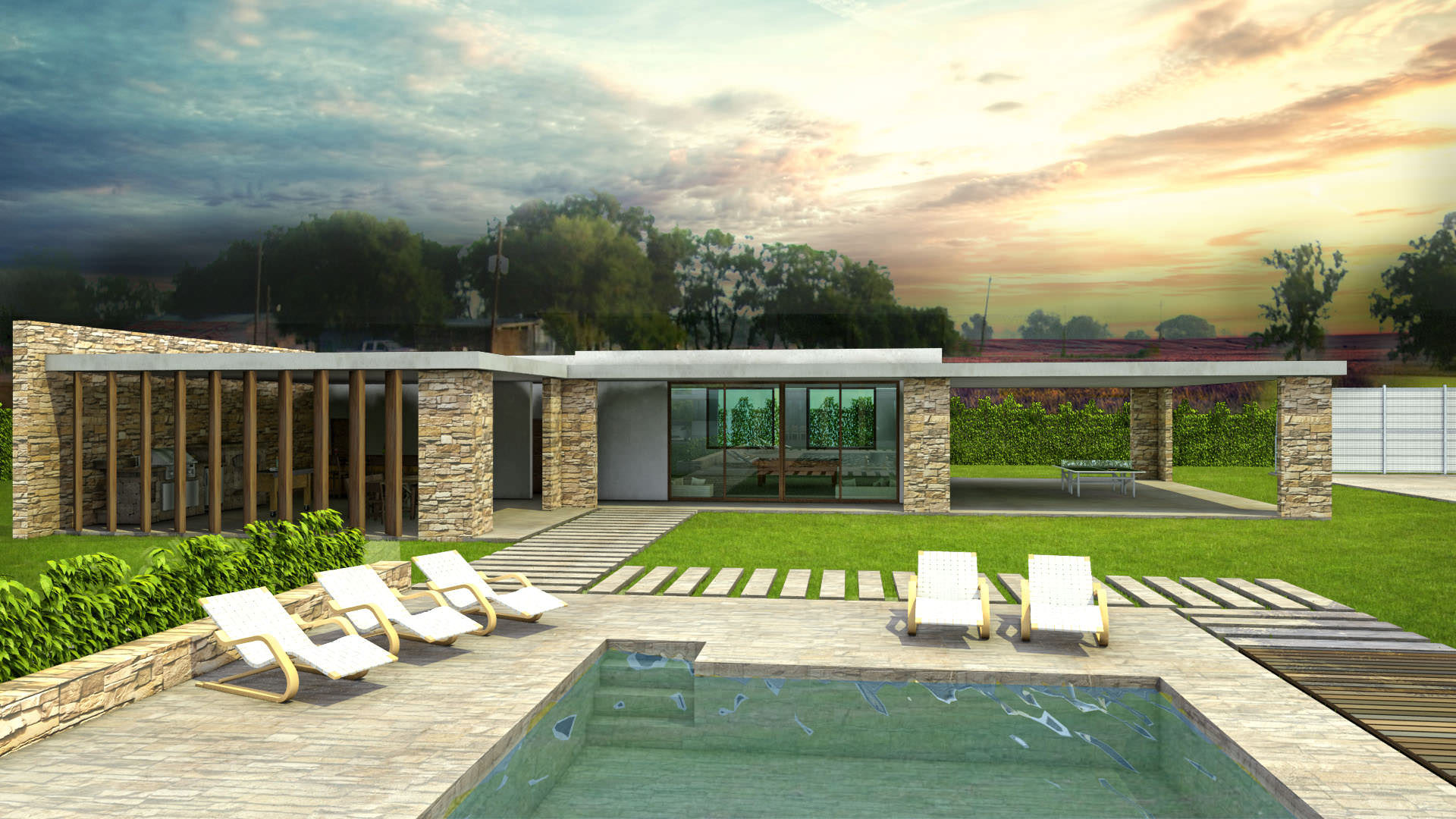Luxusní příměstská vila s bazénem, určená pro rodinnou rekreaci.